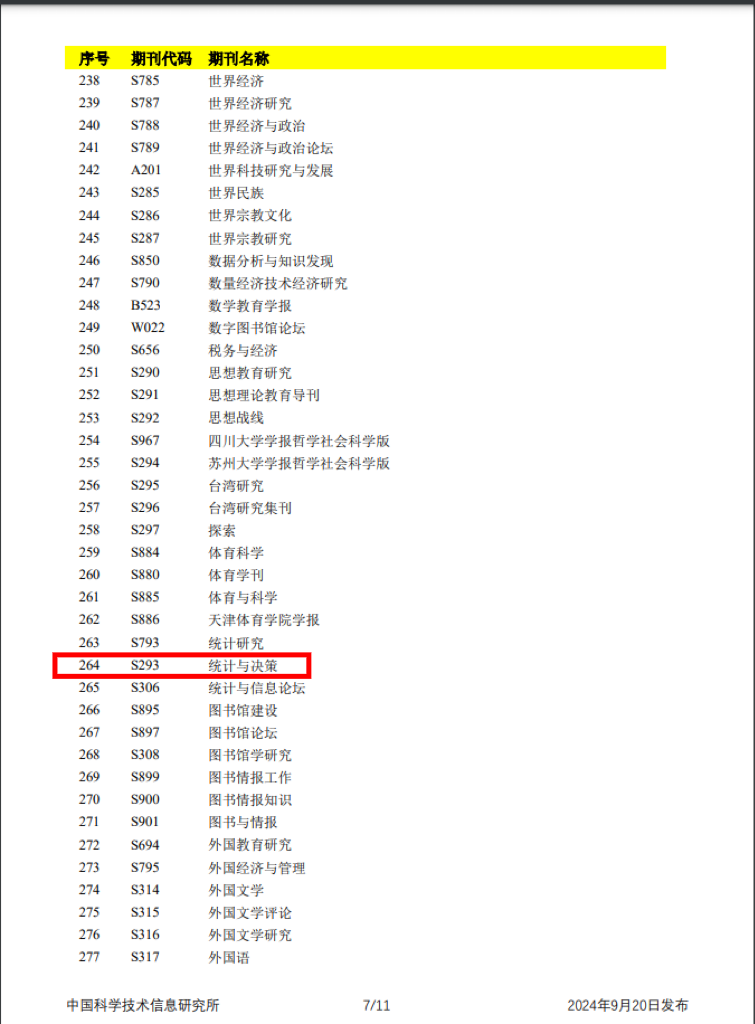 《统计与决策》入选“2024年中国科技核心期刊目录”
